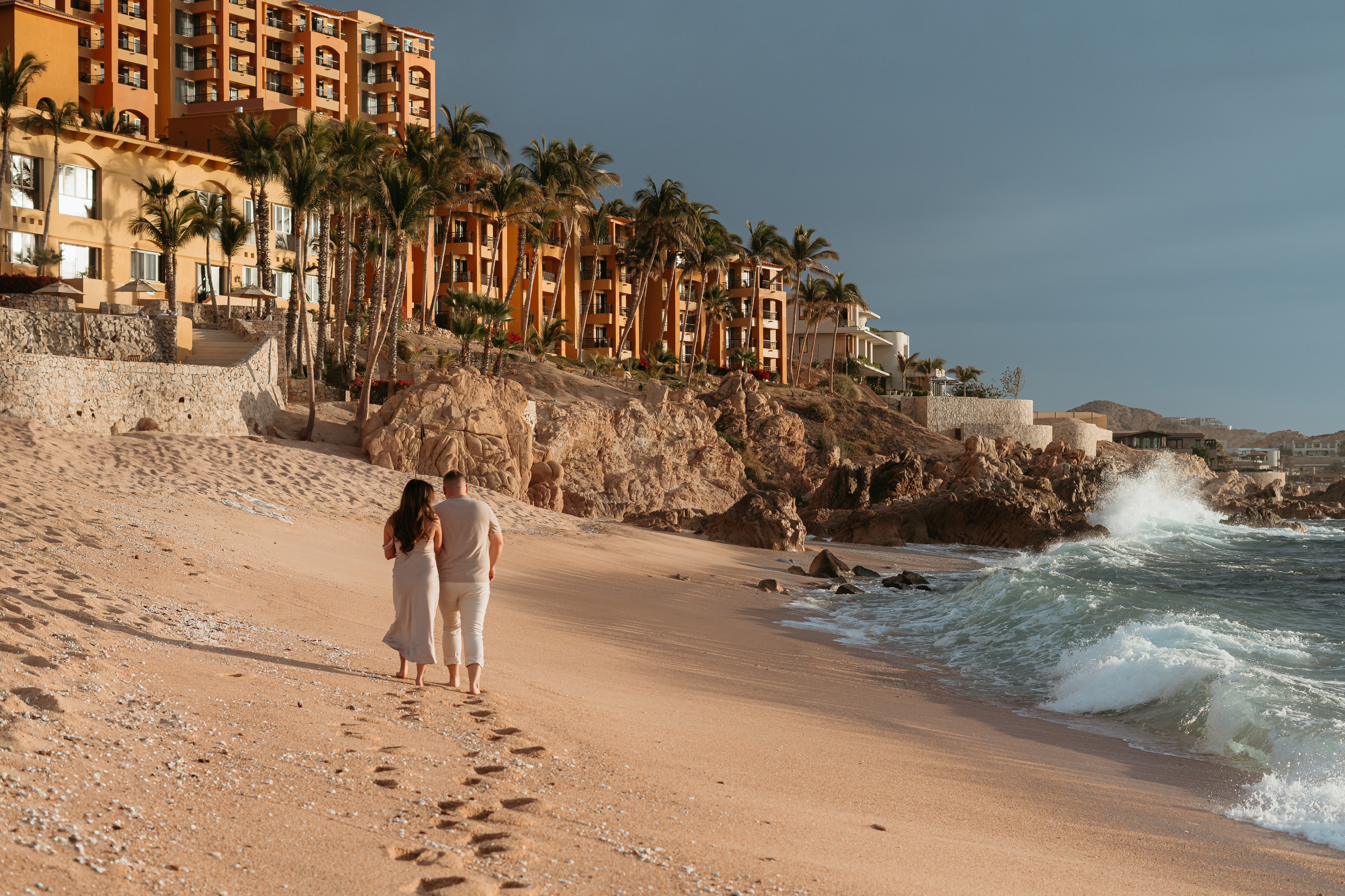 Angie and Colton chose the stunning landscapes of Los Cabos for a breathtaking sunrise photo session. As the first light of day painted the sky in soft hues, they embraced the beauty of this special place—where, in just a year, they will say ‘I do.’ With the sound of the waves and the golden glow of dawn, their love story unfolded in the most magical way, capturing the excitement of their journey to the altar.