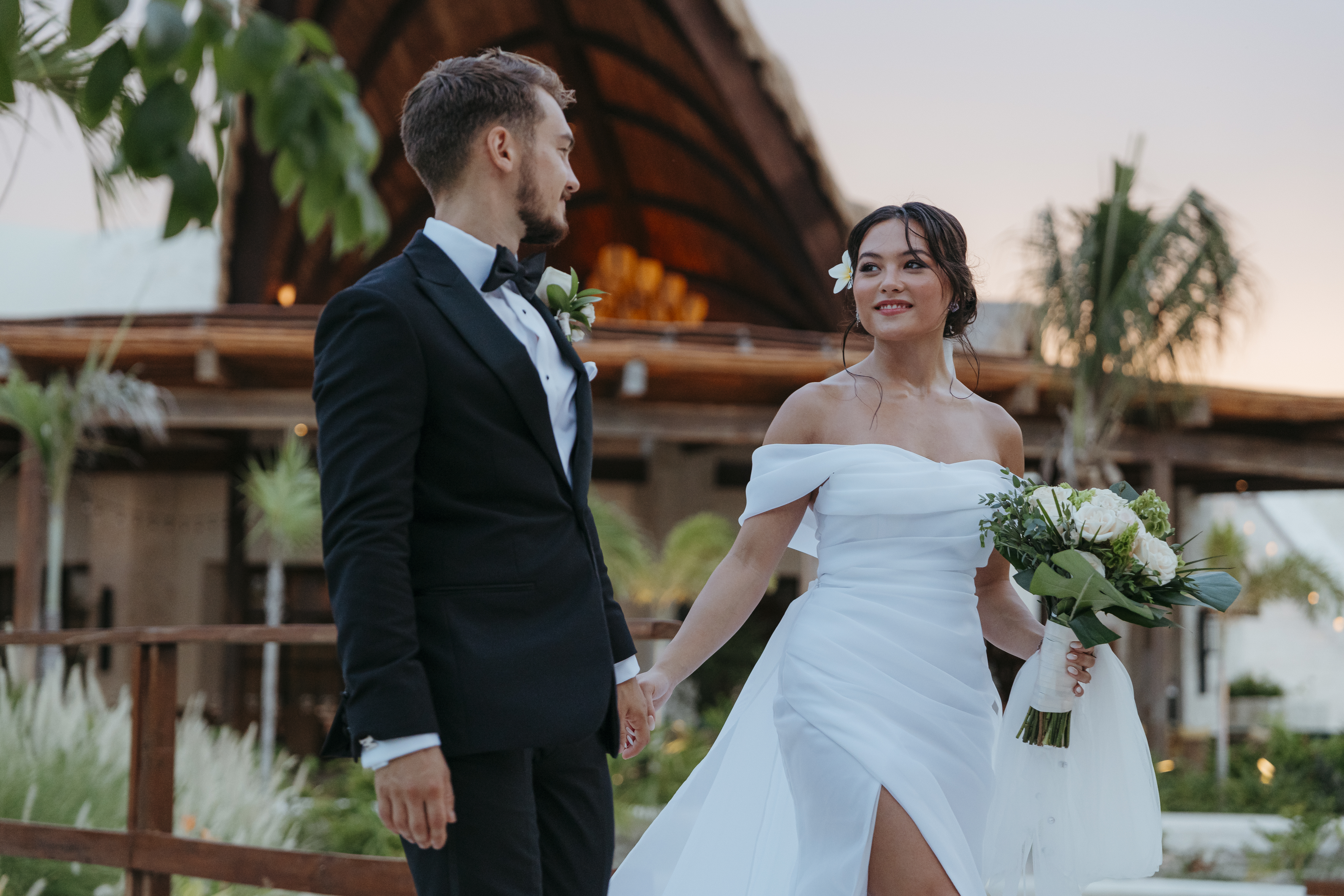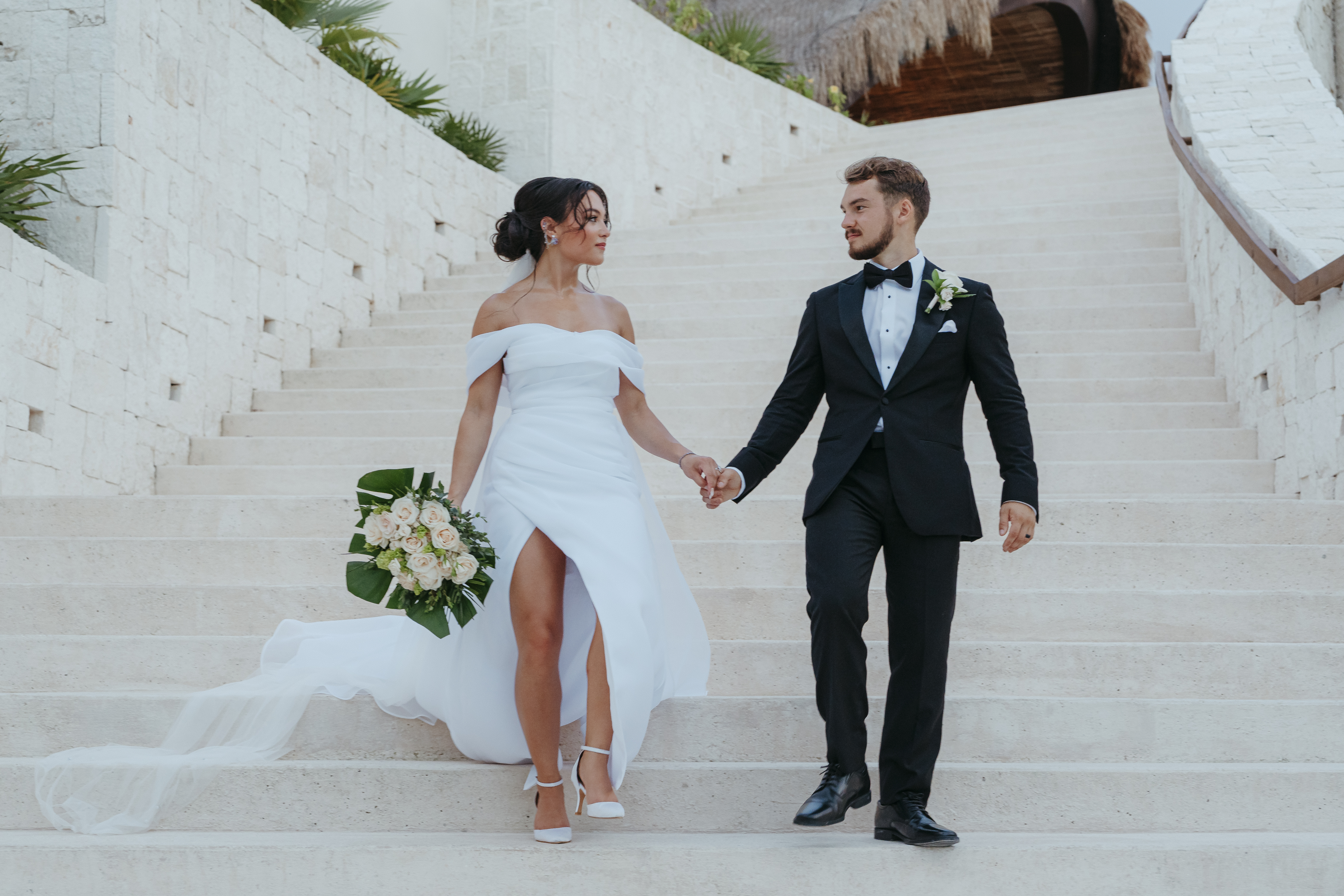 A magical wedding in the heart of the Riviera Maya, where the golden sunset painted the sky in breathtaking colors. With the sound of the waves and a warm ocean breeze, the couple exchanged vows in an intimate and unforgettable celebration. Surrounded by love, nature, and the soft glow of twilight, every moment felt like a dream.