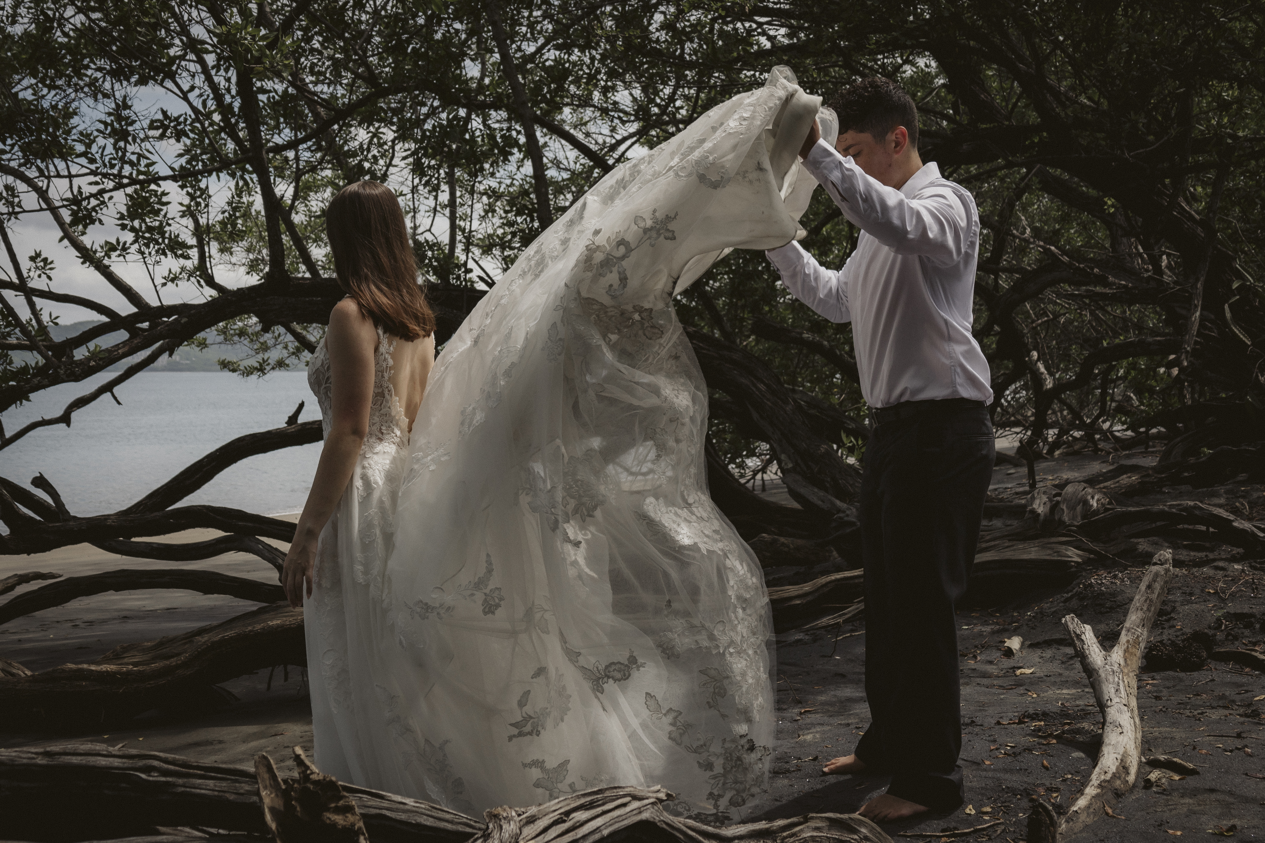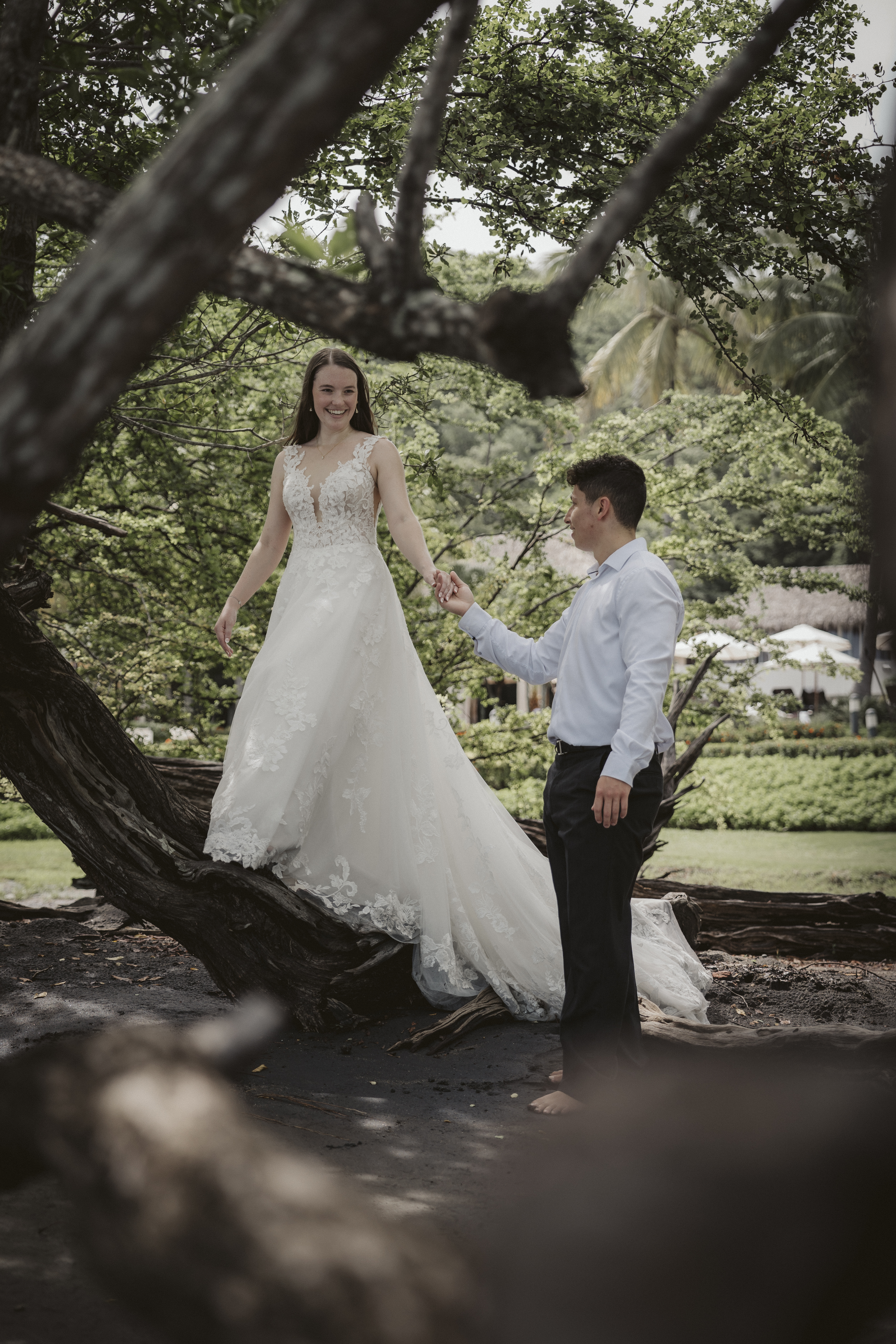 A breathtaking ‘Trash the Dress’ session filled with adventure and raw emotion. The couple embraced the moment, playing among the rocks, the waves, and the lush trees, letting nature become part of their love story. With every splash and every laugh, they created unforgettable memories, turning their wedding attire into a symbol of their wild and fearless love.
