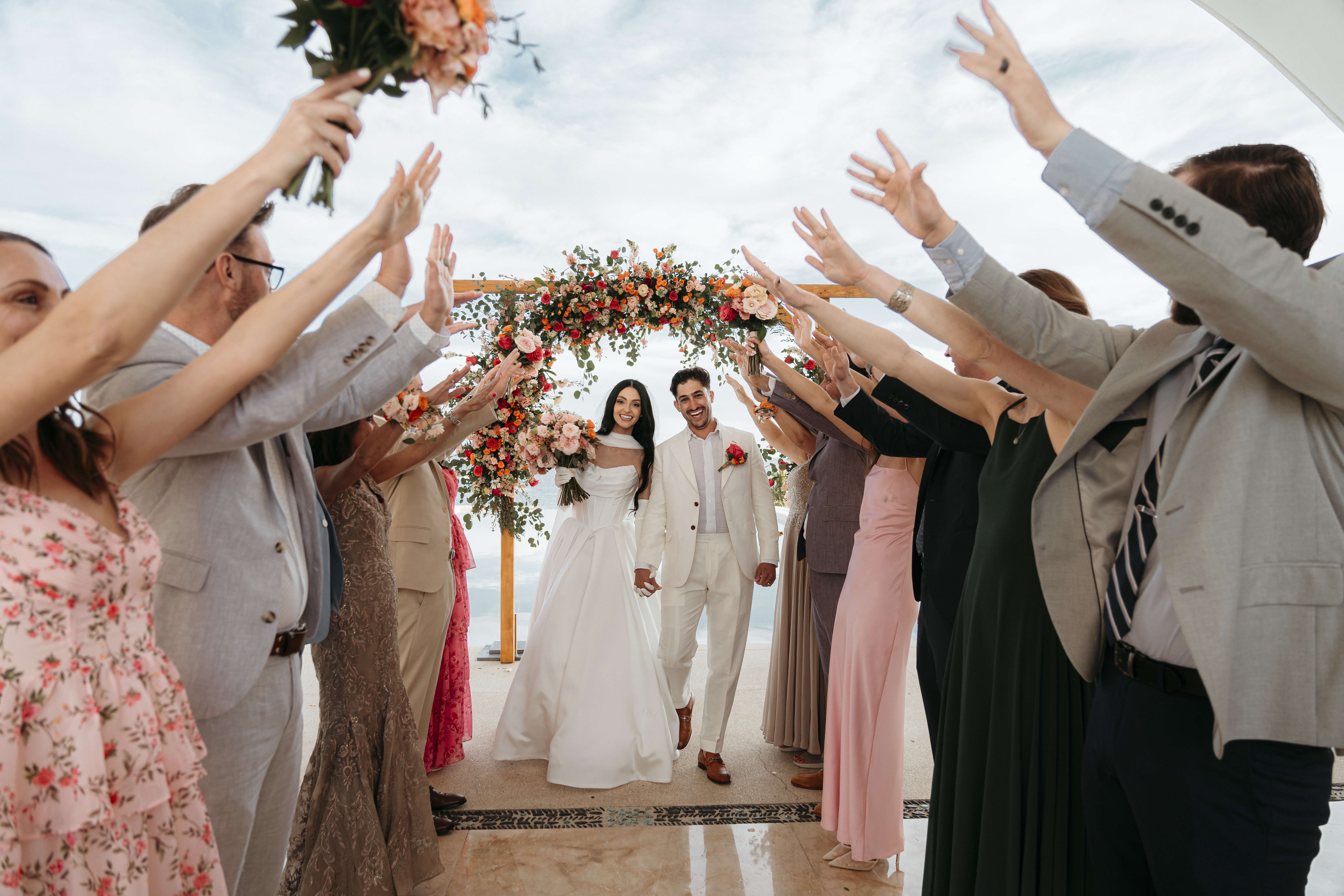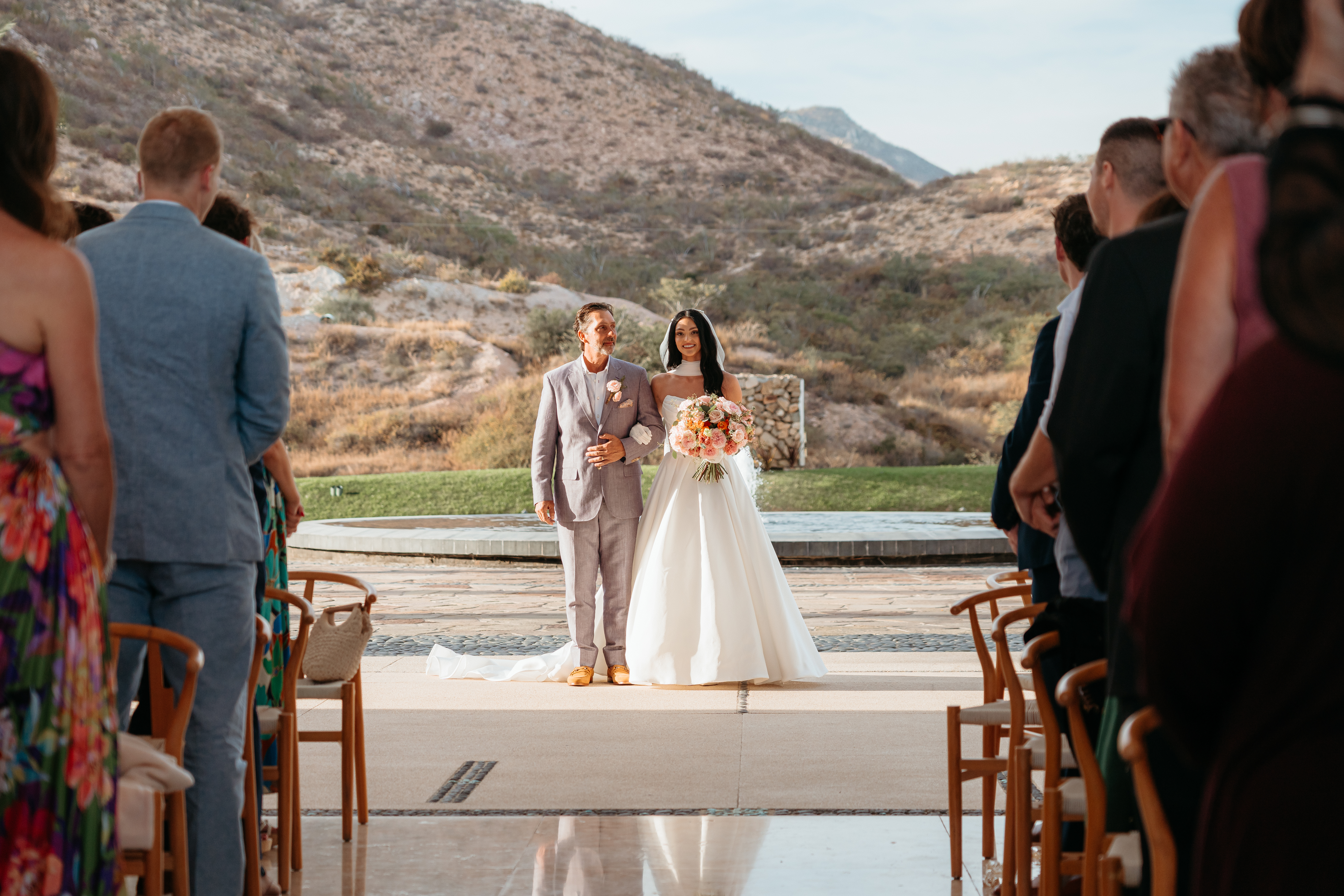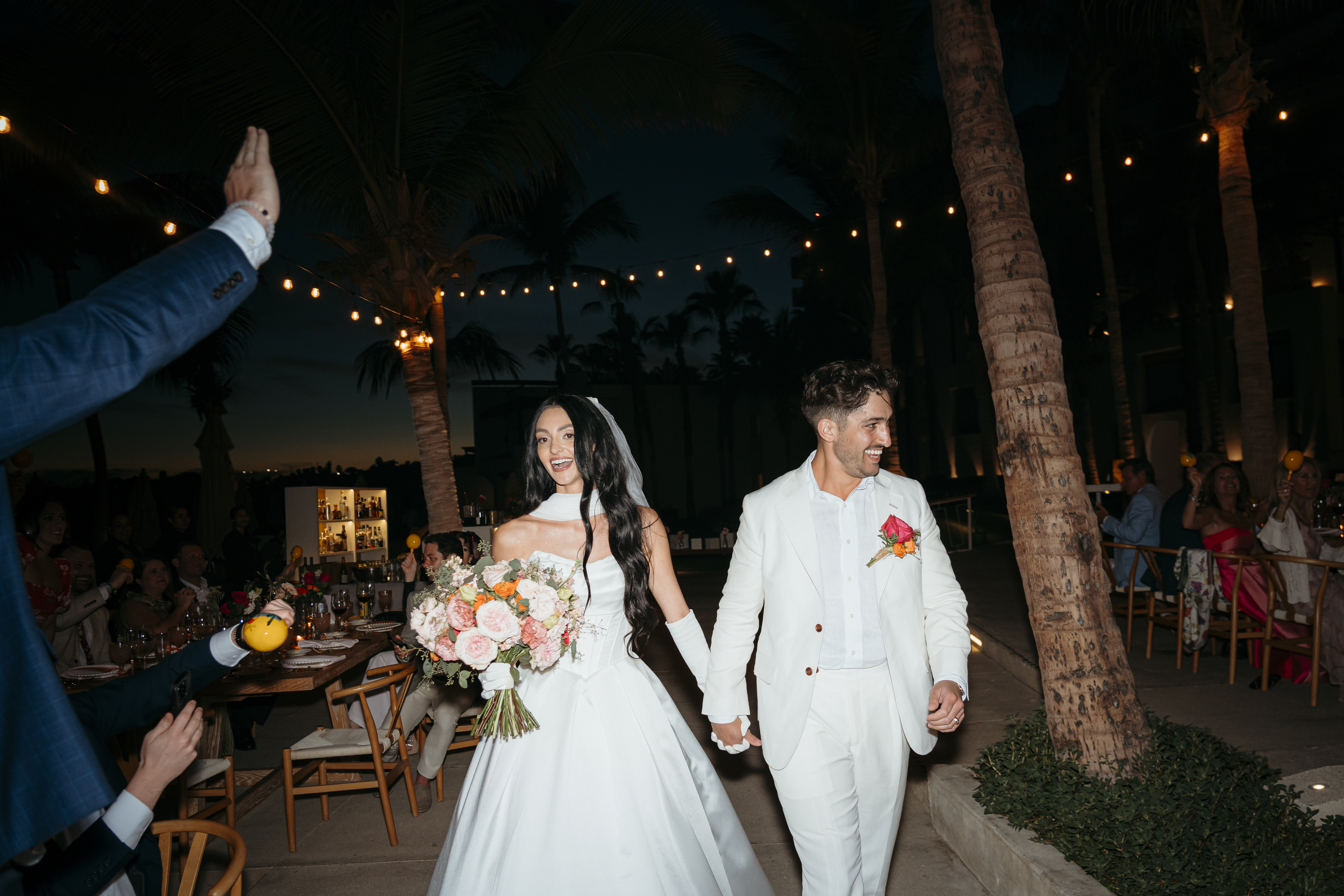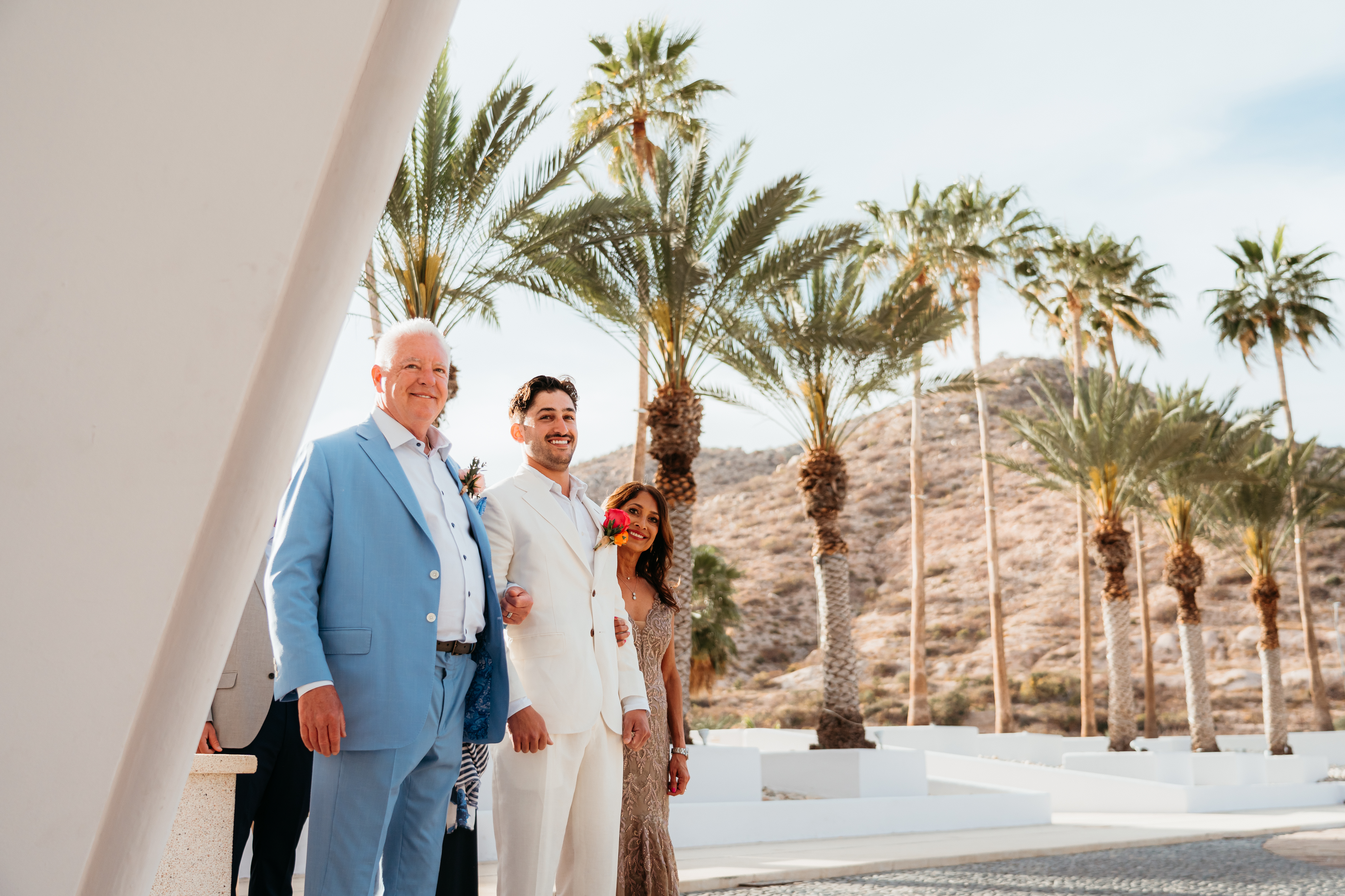 A spectacular wedding in Los Cabos, where the desert meets the sea in a breathtaking landscape. Under the warm Baja California sun and with the sound of waves in the background, the couple exchanged vows surrounded by their closest family and friends. During the celebration, guests were enchanted by the magical sight of whales breaching in the distance, adding a touch of nature’s wonder to the day. The evening was filled with heartfelt speeches, endless laughter, and a vibrant dance floor. As the night came to an end, a dazzling display of fireworks lit up the sky, marking the perfect finale to an unforgettable celebration of love.